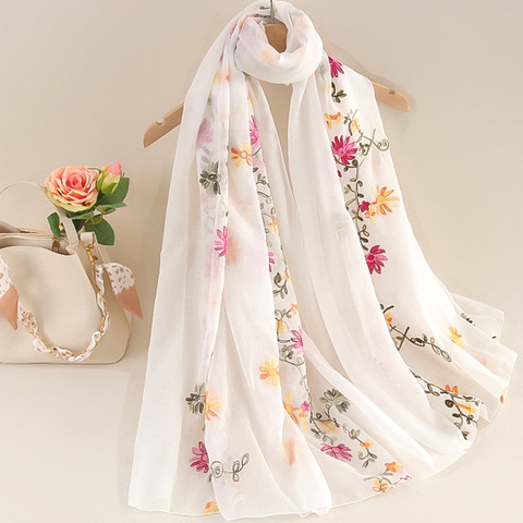 أحدث حجاب إسلامي فاخر ناعم وغطاء رأس طويل للفتيات ويغطي الرقبة وشاح مطرز بزهور